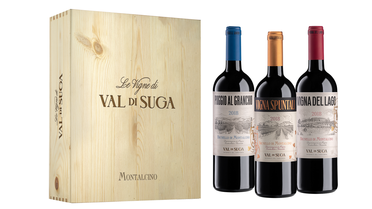 Brunello di Montalcino Cru - 1 Vigna del Lago - 1 Vigna Spuntali - 1 Poggio al Granchio in cassa di legno da 3 bottiglie